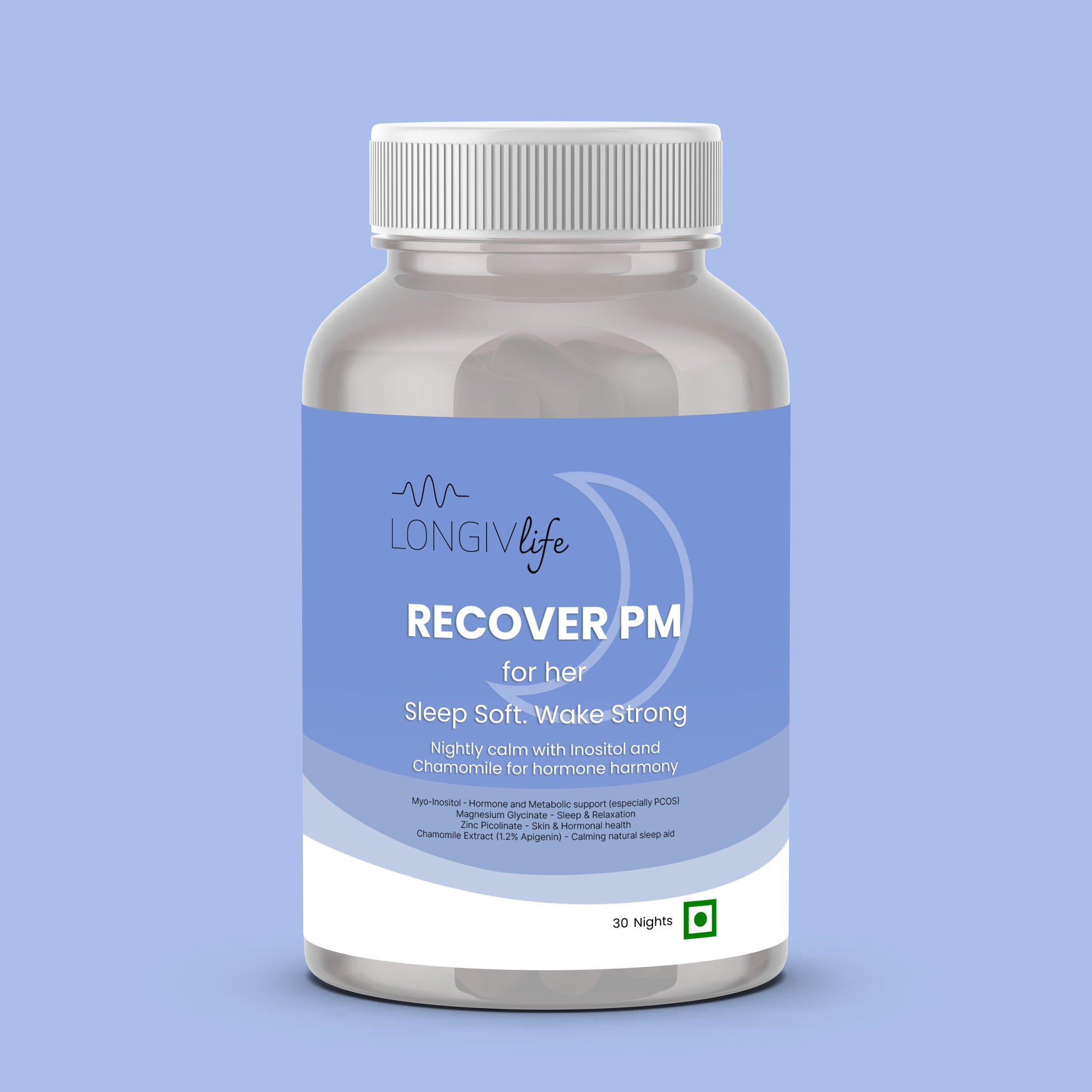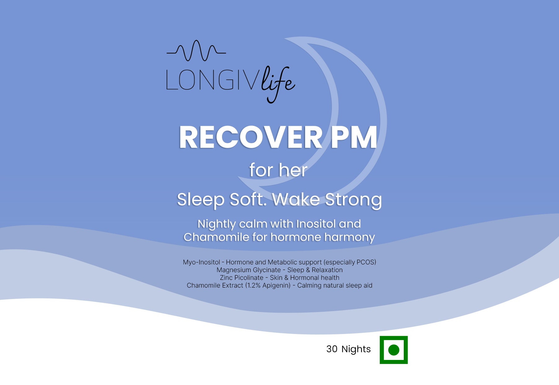 Sleep is where your body actually heals. RECOVER PM is designed to help you get the kind of deep sleep that leaves you genuinely rested, not just unconscious for 8 hours. It contains a mix of research-backed ingredients: Magnesium for muscle relaxation, Myo-Inositol to ease an overactive mind, and L-Theanine to calm your nervous system. The combination helps you fall asleep naturally, stay asleep through the night, and wake up without that groggy hangover feeling. No harsh sedatives. Just support for what your body already wants to do.